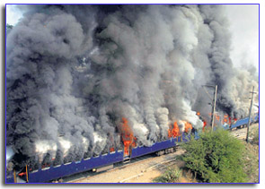 Violence erupted in the morning and as it fanned through the city, protesters began to stop trains at the station. The Mumbai-bound Deccan Queen, which ferries hundreds of daily commuters to the city every day, arrived around 11.30 am, almost two hours behind schedule as protesters had stopped all suburban trains on the track. Frightened commuters got off the train and many were pulled out. The mob's next step took everyone, including the heavily outnumbered railway police, by surprise — they set the train on fire. Since the Central Railway authorities were not prepared for such an incident, seven coaches of the Deccan Queen were burnt to ashes in no time. The Ulhasnagar civic authorities did not have provisions for a fire brigade, said sources. Almost half an hour later, a local from Ambernath to CST was also set on fire in the same area. Once again, CR officials did not have any provisions for dousing the fire and waited for fire brigade vans from the Kalyan Dombivli municipal corporation. Even while attempts were being made to control the blaze on the up train, a down service coming from CST to Ambernath also met with the same fate near Ulhasnagar. Significantly, mobs burnt all the first class coaches on both the up and down suburban locals.